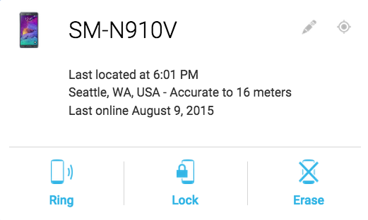 During the 3 days my phone was missing, I checked the location each day and saw that it hadn’t moved, and I also saw that the phone hadn’t been re-charged or turned on. Yep, Google can tell!